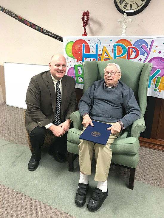 Earlier today, I had the opportunity to present a House citation to Franklin Township resident Edgar Weiss to recognize his 104th birthday.